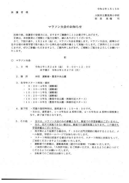 なお、天気予報は曇りもしくは雨です。予備日は27日(月)に予定しております。当日実施するか延期するかにつきましては、当日8時ころまでにこの「ホームページ」と「保護者メール」でお知らせする予定です。