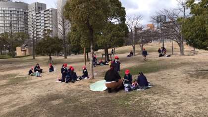 見学が終わってから、天神橋筋商店街を通って扇町公園でお弁当を食べました。