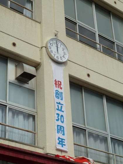 11月8日(土)5.6年生参加のもと、教育委員会をはじめ地域諸団体より58名のご来賓の方をお招きし、創立30周年記念式典を行いました。式典では祝辞の後、子ども達が豊里南の小学校の成り立ちやこれからの決意を呼びかけの形で発表しました。そして、地域の皆様からいただいた玄関の大時計の除幕式も行いました。お忙しい中、ご参加いただきましたご来賓の皆様、お手伝いいただきましたPTA役員、実行委員会の皆様ありがとうございました。