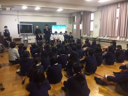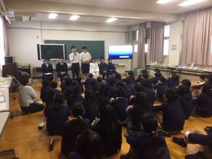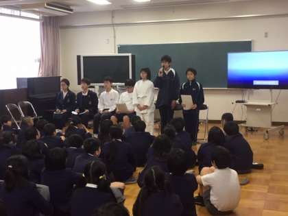 6年生対象に、東淀中学校から生徒会役員の生徒が中学校生活について説明をしに来てくれました。