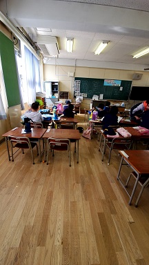 今日は登校日。久しぶりに子どもたちの元気な声がかえってきました。たくさんの配布物や荷物をまとめたり、教室の清掃をしたりしました。
