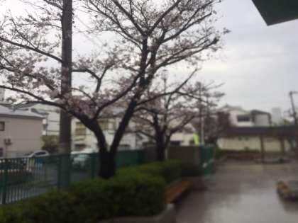 校内の桜の花がほころび始めています。入学式まで保つかどうか少し心配しています。