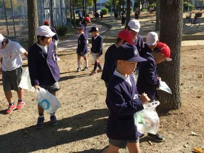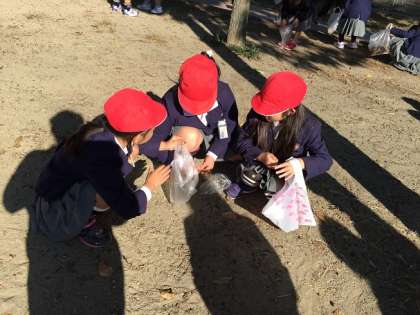 11月21日(金)1年生と2年生は一緒に「秋みつけ」のために豊里中央公園へ行きました。柔らかな秋の日差しのもと、紅葉した葉っぱを拾ったり、どんぐりを拾ったりしました。また、遊具でもみんなで楽しく遊びました。秋から冬へと変わりゆく季節を十分満喫できたひとときでした。