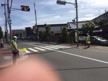 早速見守り隊の方々が子どもたちの登校を見守ってくださいました。
