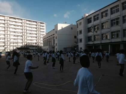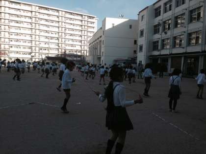 12月2日(火)なわとび週間が始まりました。寒さに負けない体づくりをするために、運動委員会が中心となって1週間毎日続けます。とても寒い中でしたが、音楽に合わせて前とびやあやとび、後ろとびなどを練習しました。休み時間も利用していろいろなとび方に挑戦して寒さに負けないよう元気に過ごしてほしいと思います。