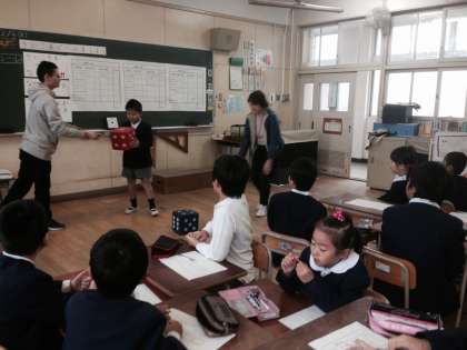 12月4日(木)2時限目になかよし学級で公開授業が行われました。なかよし学級に在籍する子ども達が全員集合し、サイコロをふって得点を競い合う「サイコロゲーム」をしました。高学年の子どもがリーダーとなって、自分の得点を計算したり、チームの得点を集計したりして楽しく学習しました。