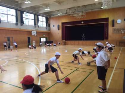 5時間目に体育館を覗くと5年2組が体育の授業。