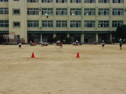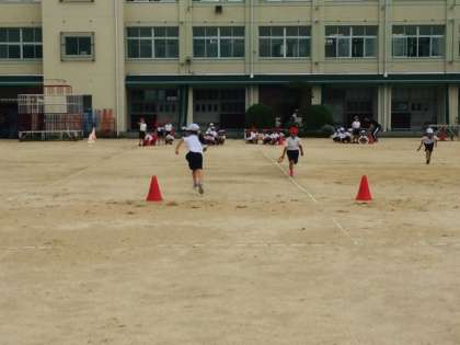久しぶりに、運動場で体育の授業です。1年生はバトンリレー。遠くから「校長先生〜!」の声。思わず手を振ってしまいました。