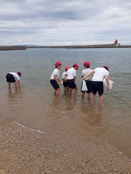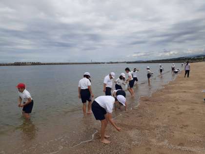 シェルメモリーのときに使う貝殻を拾っています。どんな貝殻が見つかるかな。