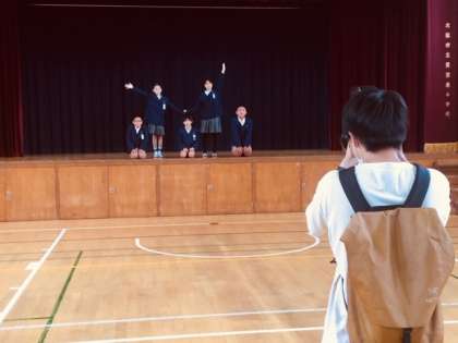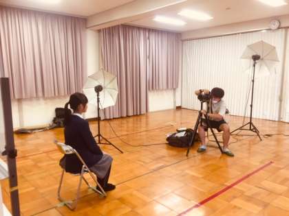 6年生が卒業アルバムに使う個人写真とグループ写真を撮影しています。