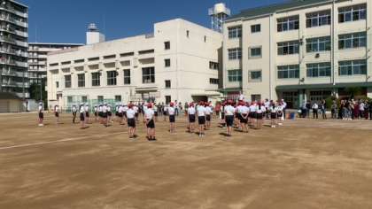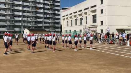 本日、6年生のスポーツ大会(体育祭)を実施しました。開会式・リレー・フラッグなどのプログラムを、元気いっぱいにこなしました。上の写真は、開会式の様子です。