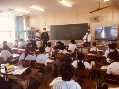5年1組では、昨日は何時に風呂に入ったかの質問をされていました。日本では夜に風呂に入るのが一般的ですが、アメリカでは朝のシャワーが一般的だそうです。知らなかったなぁ。