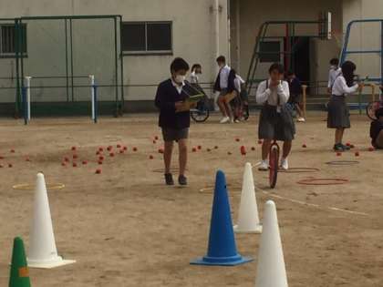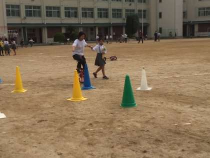 上手に乗れる人が多いのには驚きました。よく見ると担任の阿部先生もチャレンジしています。