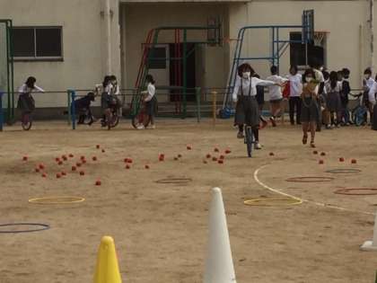 先日から一輪車大会を開催しています。全ての学年を掲載できませんが、今日は5年生の大会です。