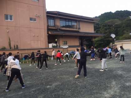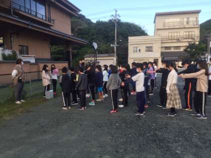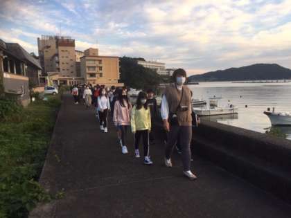 朝の集い、体操の後、少しだけ海辺を散歩しました。海が見えるのは気持ちがいいです。