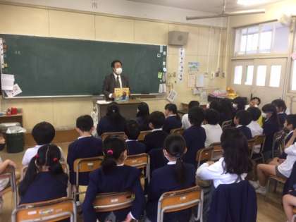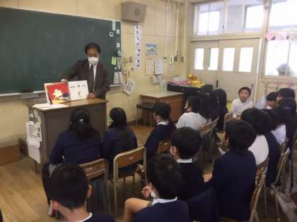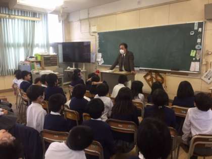 今日から、校長の特別授業を始めました。順次全学級を回ります。