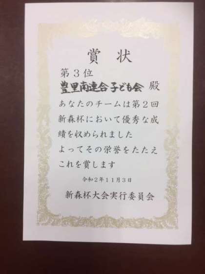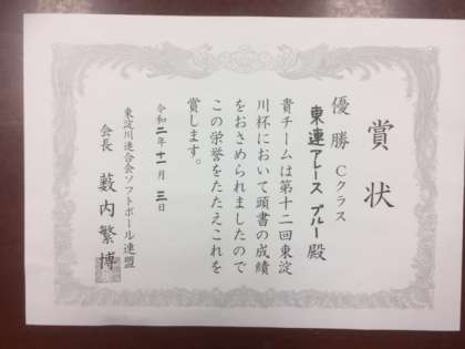 先日行われたソフトボールの大会で、子ども会のチームが表彰状をいただきました。