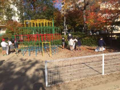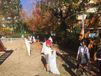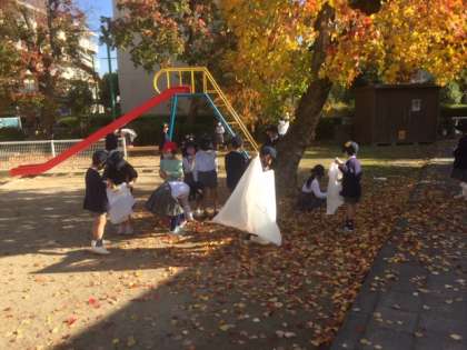 いちょうやさくらなど、色々な落ち葉を拾って図工で利用します。