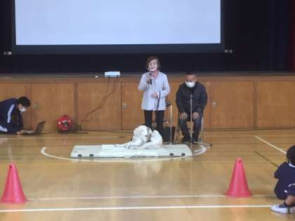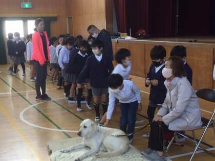 講師に西淀川区から山本美恵子さんとフェリシアちゃんをお迎えして、盲導犬について教えていただきました。