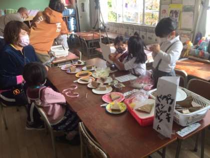 先日から準備をしていた秋のおもちゃ屋さん。自分たちで模擬店を開き、お客さんを迎えます。今日のめあては「お客さんに喜んでもらおう。お店やさんを楽しもう。」です。