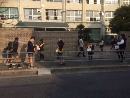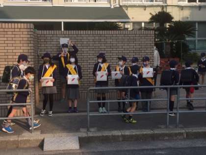 代表委員会のメンバーが中心となり8:15から8:30までの間、正門で募金を集めています。