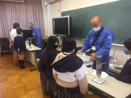 今日は柴島浄水場から、大阪市の水道の仕組みについて出前授業に来ていただいています。