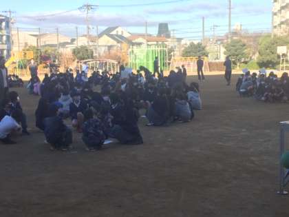 今日の児童集会は集会委員による「先生当てクイズ」です。先生に関するヒントを出して、それがだれかを当てるクイズです。