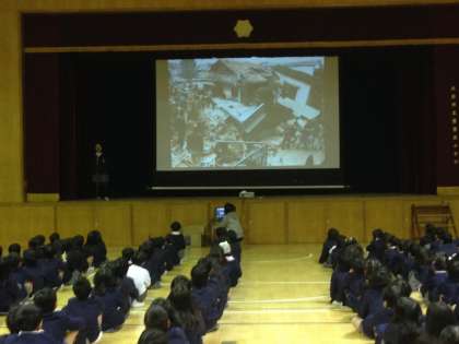 2月5日(木)今日の児童集会は、新聞・掲示委員会の担当でした。20年前に起きた阪神淡路大震災のことを調べて発表しました。被害の様子や当時の様子を知っている先生にインタビューした内容などを発表しました。また、大きな災害が発生することを考えてどんな備えをしておいたらよいかについてもお話がありました。みんなシーンとなって真剣に発表に耳を傾けていました。新聞・掲示委員会の皆さん、ご苦労さまでした。