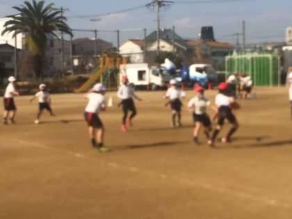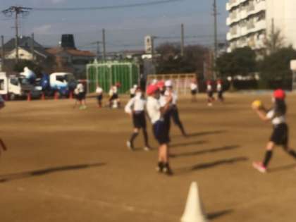 4年生がタグラグビーをしています。ラグビーを簡易にした新しいスポーツです。似たようなスポーツにタッチフットというのもありますが、石川先生によるとタグラグビーは今の時代にぴったりとのこと。相手の体に触ってはいけない。タグを取るだけ。ケガを避けるために考えられたようですが、接触を避けるのは今のご時世ではまさにタイムリー。