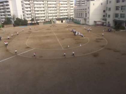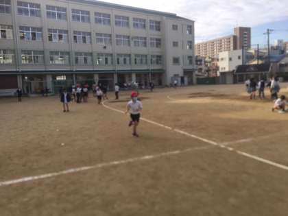 それに向けてみんな練習をしています。写真は体育の授業ですが、子どもたちは2つのグループに分かれてバディのタイムを計測します。