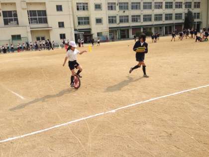新しい一輪車が40台入って1ヶ月ほど経ちました。みんなどれくらい乗れるようになったでしょうか。2月12日(木)と13日(金)の2日間は、一輪車大会です。一輪車で5m行けたら銅メダル、15mで銀メダル、30m以上で金メダルが運動委員会からもらえることになっています。今日は低学年の子ども達がたくさん挑戦していました。明日は高学年の大会です。どんどん練習して上手になってほしいと思います。運動委員会のみなさんもご苦労様です。