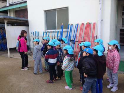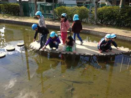 2月13日(木)豊里第一保育所の年長組のみなさんが豊里南小学校を見学にやってきました。運動場で体育のようすを見学したり、学校の施設を見て回りました。一番喜んだのが遊び広場です。池を見たり、アスレチックで元気に遊んだりしました。はしゃぎすぎて池にはまってしまったお友達もいました。