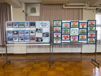 パソコンクラブのコンピュータグラフィックと、手作りクラブの作品が展示されています。