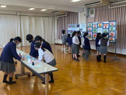 各学級順番にクラブ展示を見学しています。