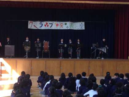 子ども達が、日頃活動しているクラブ活動の発表を作品展示、ビデオ発表、舞台発表などの3つの方法で実施しました。2月16日(月)から19日(木)は、多目的室で手作りクラブと科学クラブの展示発表をしました。また、17日(火)、18日(水)は、給食の時間にパソコンクラブ、屋外運動クラブB,屋内運動クラブのビデオ発表がありました。そして、今日、2月19日(木)には、ダンスクラブ、音楽クラブ、屋外運動クラブAなどの舞台発表が行われました。どのクラブもとてもよく頑張っている様子が伝わってきました。