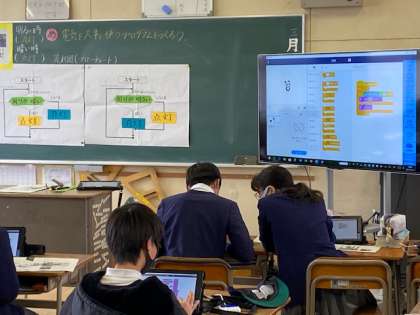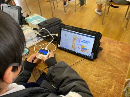 6年生の理科でプログラミング学習をしています。今年から始まった新しい取り組みです。