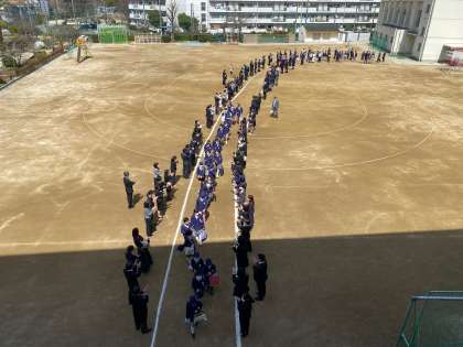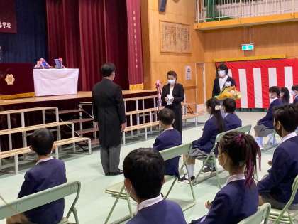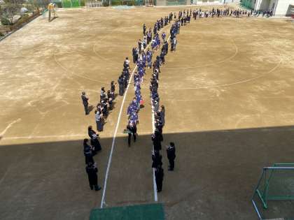 式の終了後、保護者謝辞・花道の見送りです。