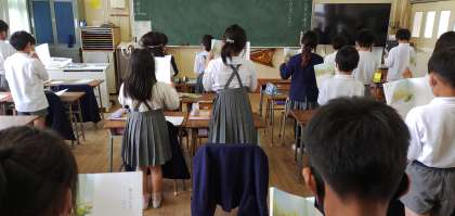 3年2組の授業の様子です。国語の音読に取り組んでいました。みんな上手に感情を込めて読むことができていました。