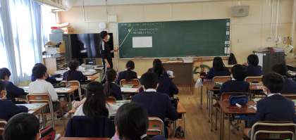 6年1組の授業の様子です。算数の授業で点対称の図形を学習していました。ノートにプリントをはって、作図を完成させていました。