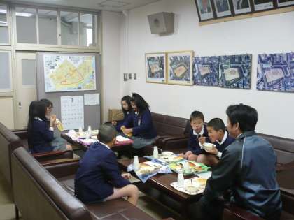 6年生が校長室で給食を食べる会食会が始まりました。小学校生活で楽しかった思い出や中学生になったらしてみたいことなどを話題にして会食をしています。校長室にはじめて入る子ども達も多く、はじめは少し緊張気味でしたが、次第に慣れて会話もはずんでいました。中学校へ行ってもしっかり頑張ってほしいと思います。