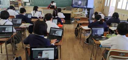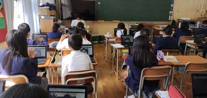 連休明けの5月6日、8時50分〜9時35分まで、各学級で一人一台端末を利用し双方向通信のテストを行いました。今後、準備が整い次第、活用していく予定です。