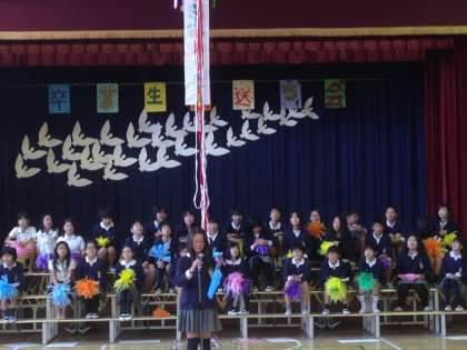 3月6日(金)2時限目に卒業生を送る会を講堂で行いました。6年生が入場した後、各学年から歌や演奏、お礼の呼びかけなどが披露されました。6年生からは、在校生へのメッセージやダンスやリコーダー演奏、クイズなどのプレゼントなどがありました。妖怪ウォッチのダンスも全校で踊りました。そして、「卒業おめでとう」と書かれたくす玉も割って全校で卒業を祝いました。