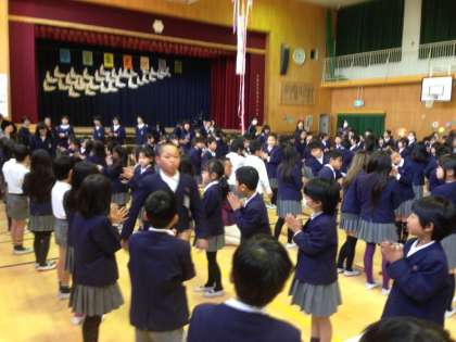 最後に、6年生は全校の子ども達の間を通りながら退場して会は終了しました。胸が熱くなるとてもすばらしい卒業生を送る会でした。