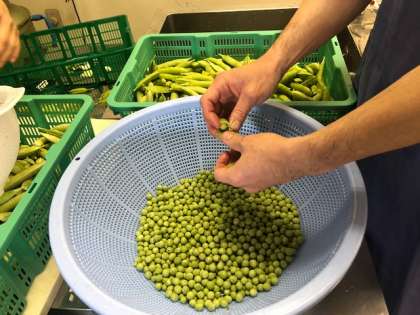 旬の生えんどうは給食で年に1回の登場です。今朝、一つ一つさやから取り出して卵とじにしました。