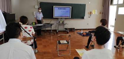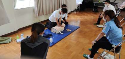 6月1日、今日は校時を変更し救急救命講習を行いました。万が一の普段の教育活動での事故だけでなく、これから始まるプールでの活動にも備えることができるように教職員が受講しました。大阪消防振興協会から3名の方を講師に迎え心肺停止時の対応の仕方、AEDの使い方普段の生活だけでなくこの夏のプールでの指導にも備えることができるようにや胸骨圧迫(心臓マッサージ)などを実技練習を交えながらの講習でした。