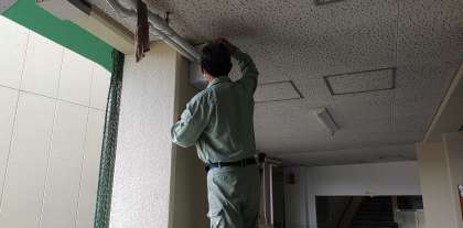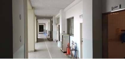 管理作業員さんが東館の廊下の塗り替えをしています。懇談やいきいきで1階廊下を通った時に気づいていただけた方も多いと思いますが、とても明るくなりました。今後南館の廊下も塗り替えていく予定です。