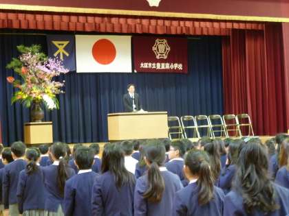 4月8日(水)着任式と始業式を行いました。いよいよ平成27年度の始まりです。2週間ぶりに学校に元気な子ども達の声が戻ってきました。ひとつずつ学年があがった子ども達がとてもたくましく見えました。担任発表、クラス替えの後、子ども達に新しい教科書などが配られ、1年のスタートがきられました。
