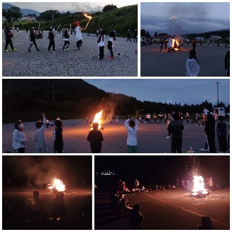 今日の最後の活動、キャンプファイヤーを行いました。キャンプファイヤーの係の児童がみんなを盛り上げてくれました。この後、班長会議、室長会議があり、22時に就寝します。
