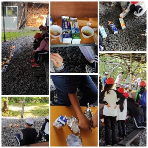 最終日です。ハチ高原は昨日に続き晴天です。全員元気で発熱者も0です。朝の会では力いっぱいラジオ体操を行いました。朝食はカートンドッグをそれぞれが作りおいしくいただきました。