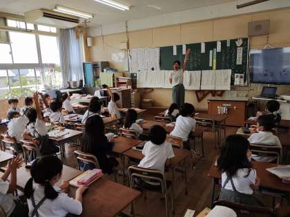 教員の授業力UPのため教員の授業相互参観を行っています。すべての先生が年1回行います。今日は1年生の授業でした。多くの先生が参観し、今後の授業に役立てていきます。